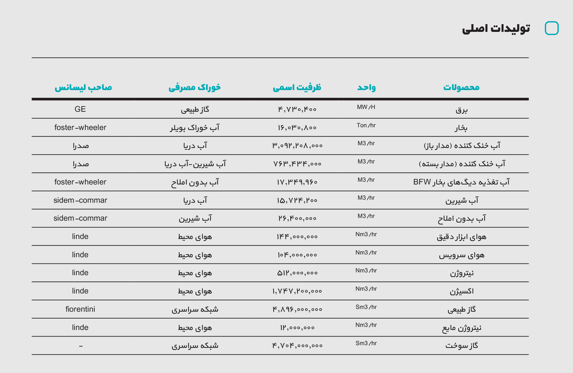 تولیدات اصلی